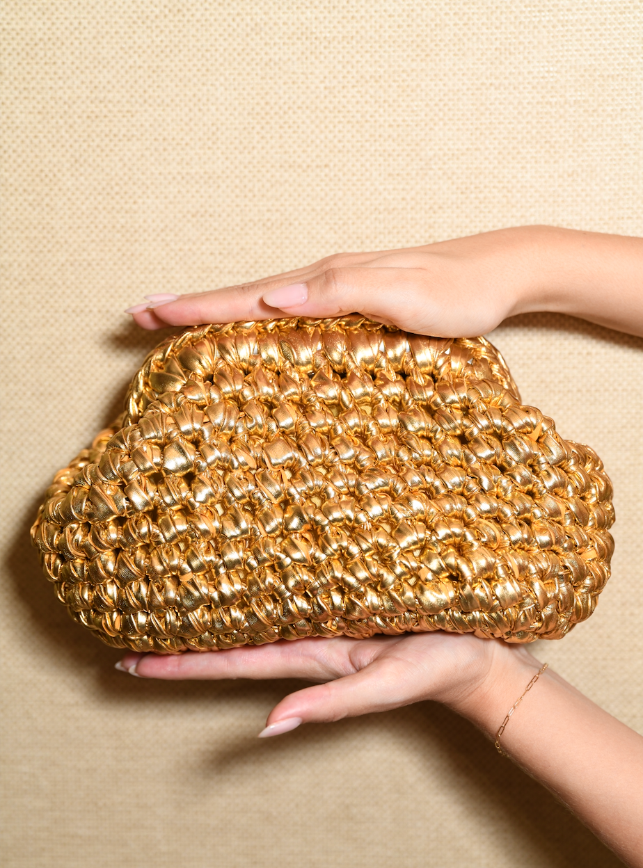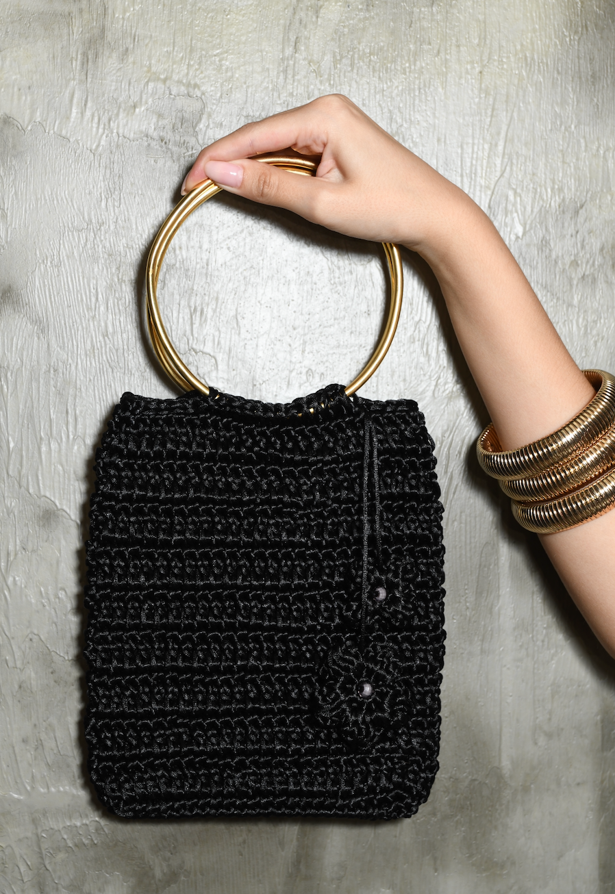 Cartera elegante y moderna con aro metálico protagonista que eleva el diseño y le da un toque sofisticado y chic. Disponible en dorado o negro, es el complemento perfecto para looks tanto de día como de noche.