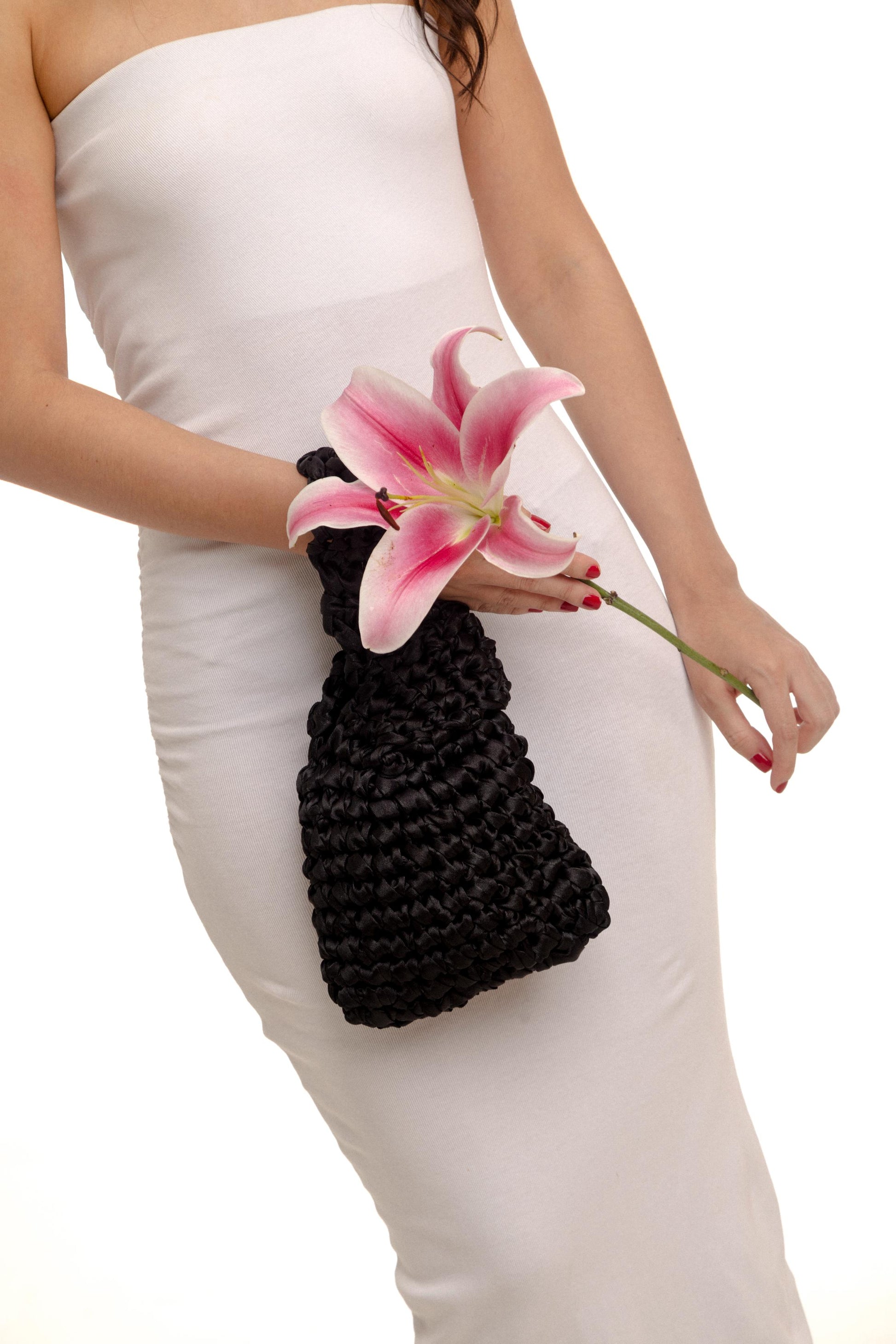 Descubre la elegancia y versatilidad de nuestra cartera cruzada LUNA, tejida a mano en crochet con cinta de seda. Este accesorio moderno es la combinación perfecta de estilo y funcionalidad. Su diseño ingenioso permite usarla en la muñeca, brindando un toque chic y sofisticado a cualquier atuendo. Esta cartera es una declaración de moda que resalta tu buen gusto. ¡Luce tu estilo único con esta pieza artesanal!
