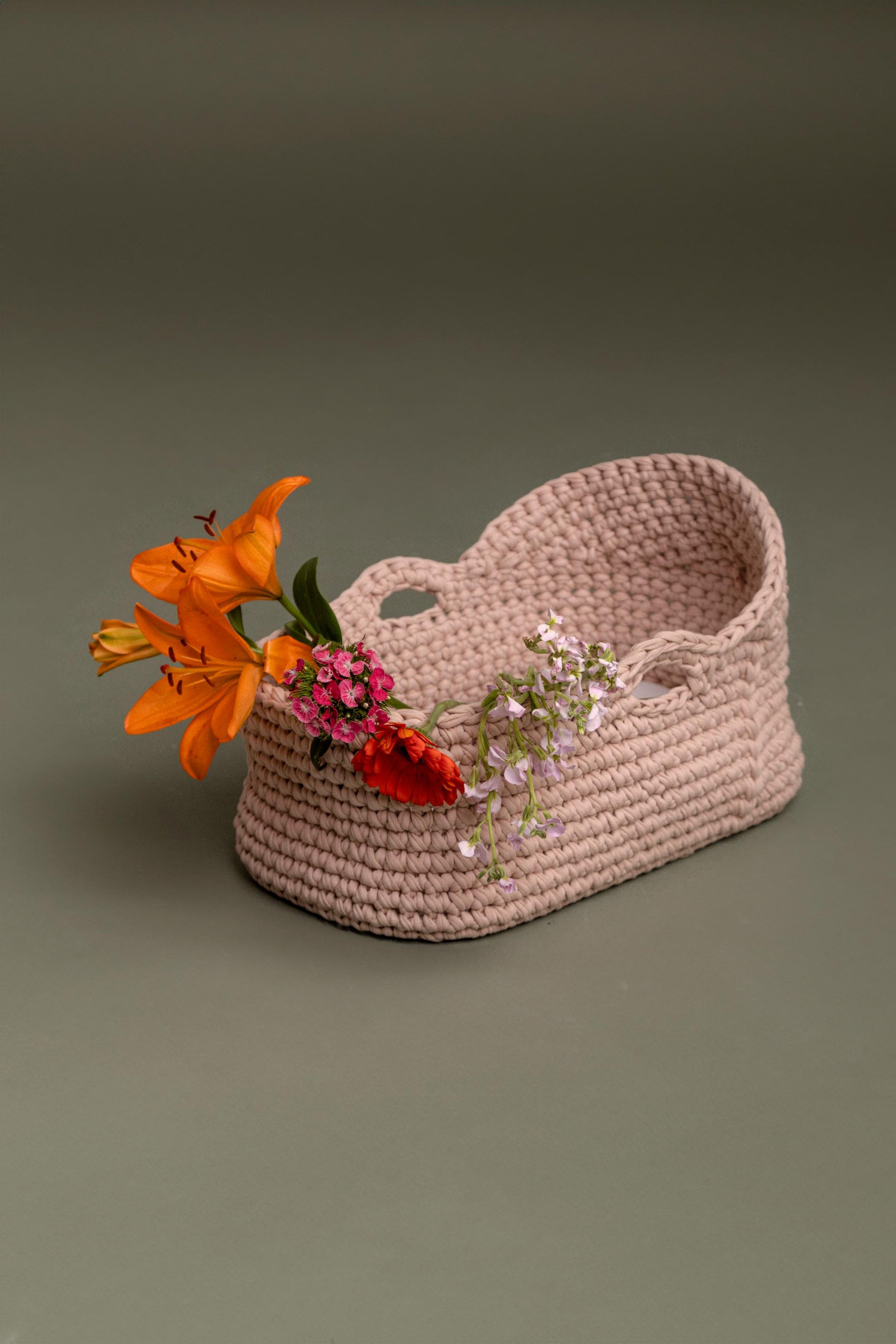 La cuna para muñecas tejida a mano en algodón es el juguete ideal para niñas de 1 a 7 años, que replica un moisés real de bebé. Su estructura cuidadosamente tejida ofrece una apariencia delicada y natural, mientras que su base mecedora permite que las niñas imiten el suave vaivén del movimiento que suelen ver en las mamás. Perfecta para acunar y cuidar a las muñecas con cariño, esta cuna fomenta el juego simbólico y el desarrollo de la imaginación, brindando horas de diversión y aprendizaje. Una pieza especial y funcional que encantará a las más pequeñas.